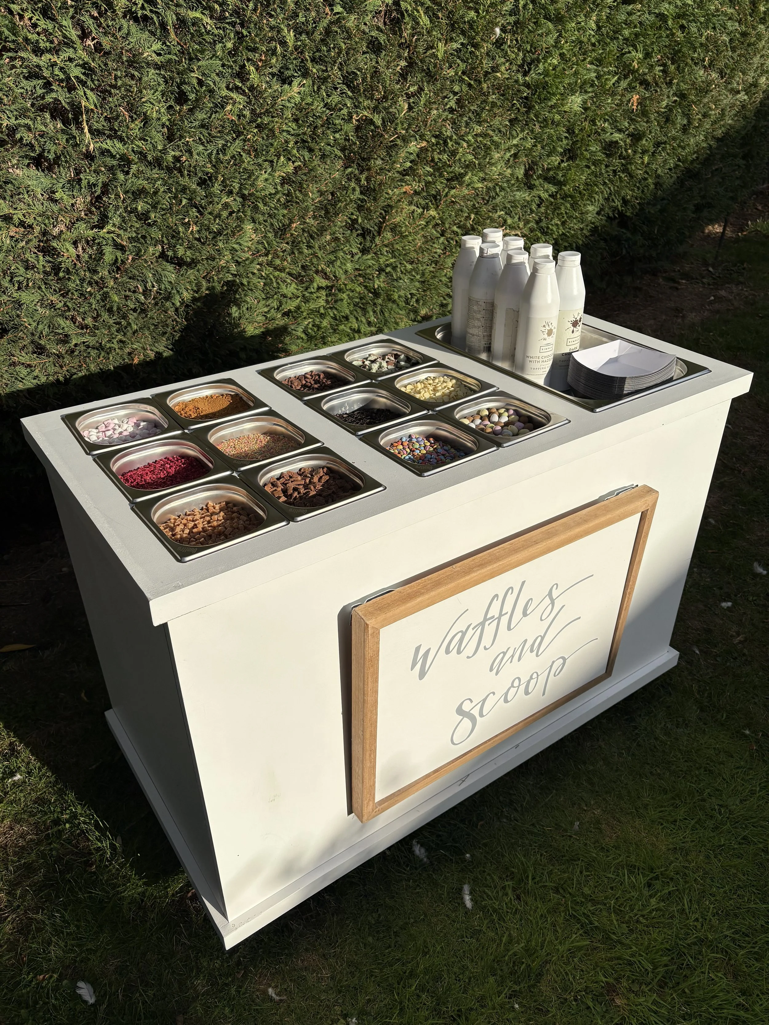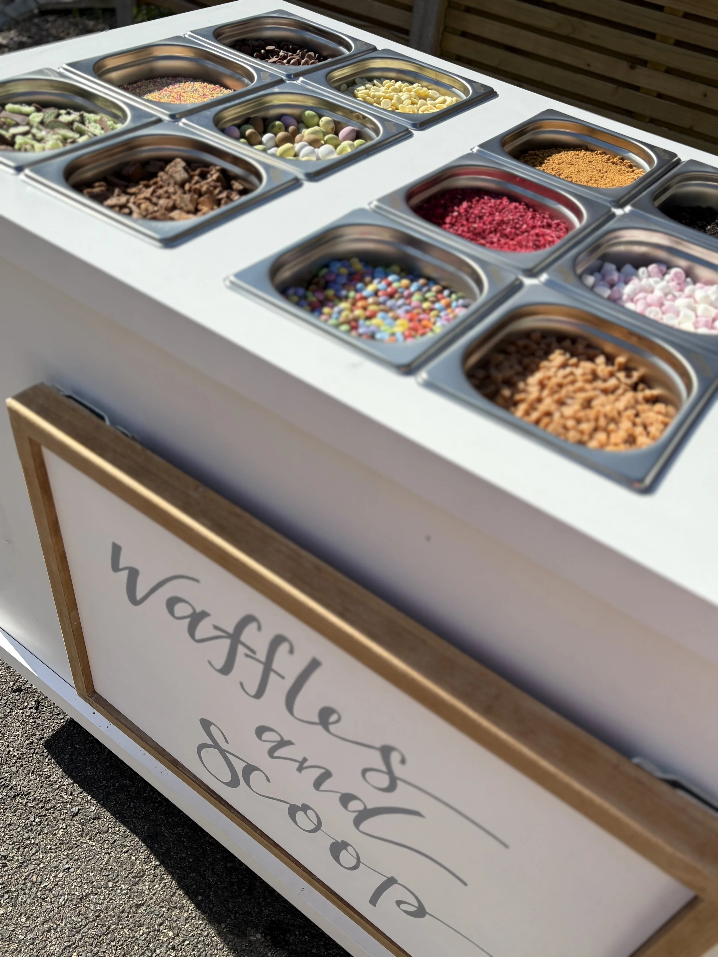 The Horsebox provides a classy and quirky touch, elevating events. We provide dozens of toppings and sauces, along with the amazing Jude’s ice cream, which is sure to leave every guest satisfied. We also provide guests with the option of waffles or waffle balls.